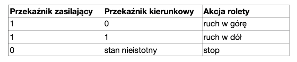 Poniższa tabela zawiera podsumowanie komend do sterowania roletami dostępnych w systemie DOMIQ: