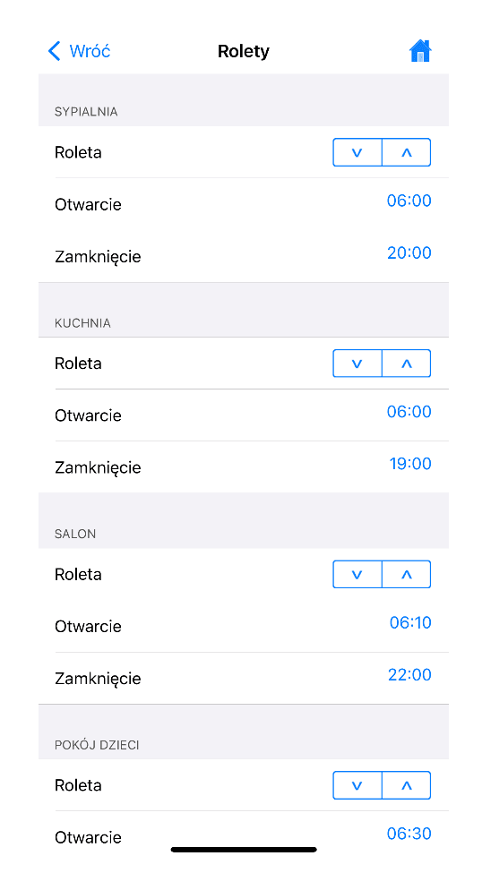 - możesz utworzyć sekcje dla poszczególnych pomieszczeń. To rozwiązanie sprawdzi się szczególnie w przypadkach, gdy w danym pomieszczeniu jest więcej niż jedna roleta. W takim przypadku pamiętaj o nadaniu nazw pomieszczeń poszczególnym sekcjom.