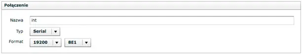 Domyślna konfiguracja odpowiada następującym parametrom: adres 1, prędkość transmisji 19200bit/s, format ramki 8E1, wyłączony terminator.